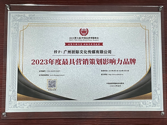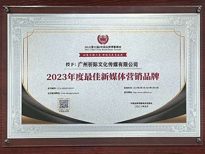 至此,祈际网络已整合100000+媒体资源,覆盖超过50个行业的KOL/KOC,为1750+企业提供一次或多次品牌营销建议,同年获得中国品牌博鳌峰会颁发荣誉,成为网络营销领先品牌之一。