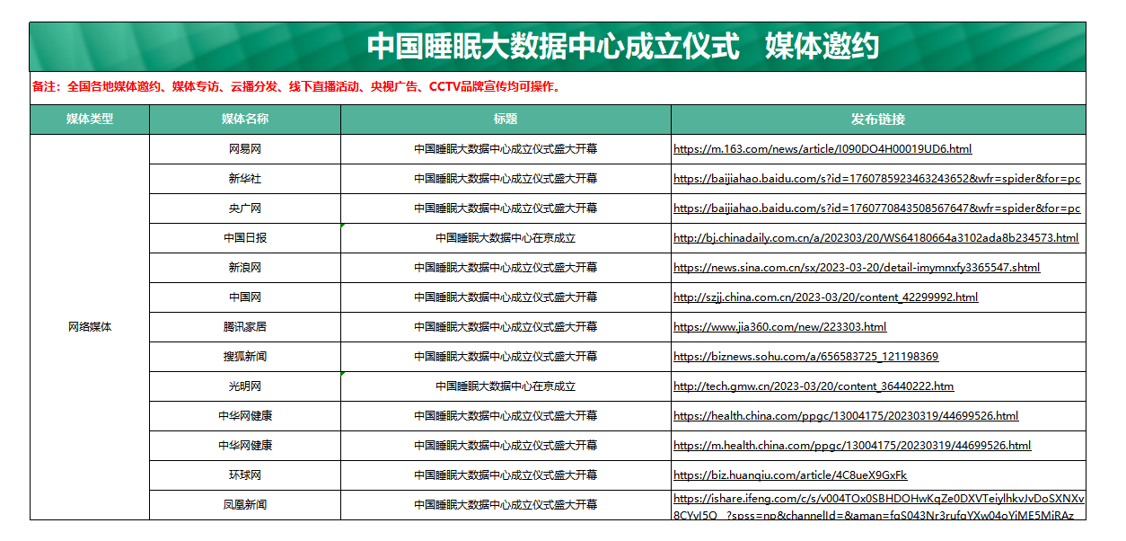 中国睡眠大数据中心成立仪式发布会媒体邀约
