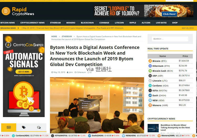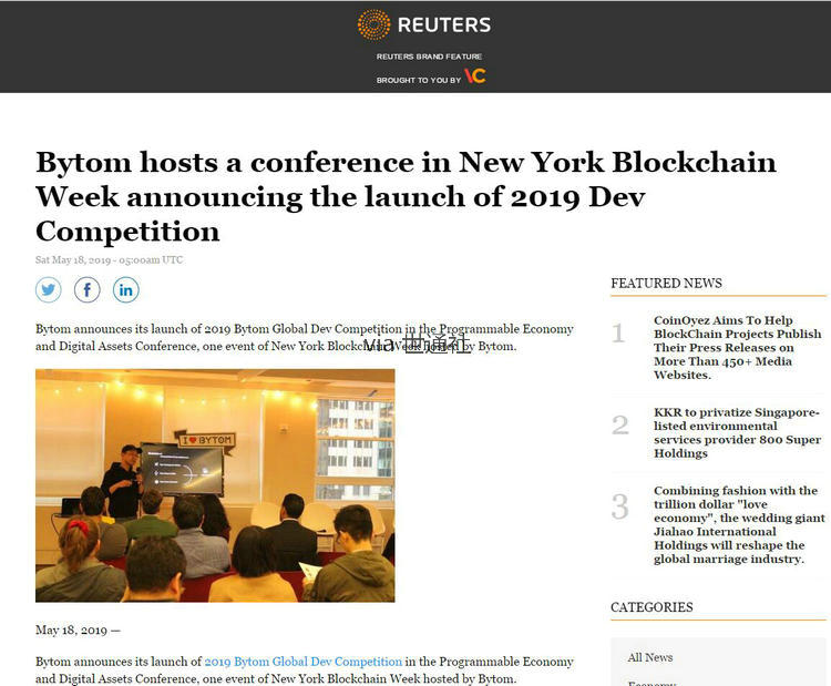 - 比原链在纽约区块链周期间,比原链CEO段新星宣布了2019比原全球开发者大赛正式启动的消息!