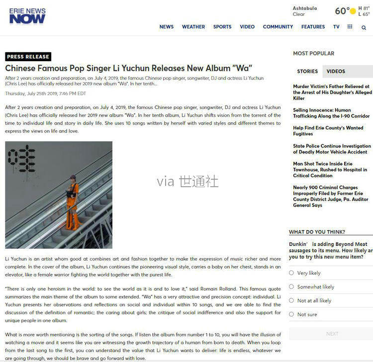 2019年7月24日,李宇春发行了个人新专辑《哇》