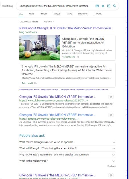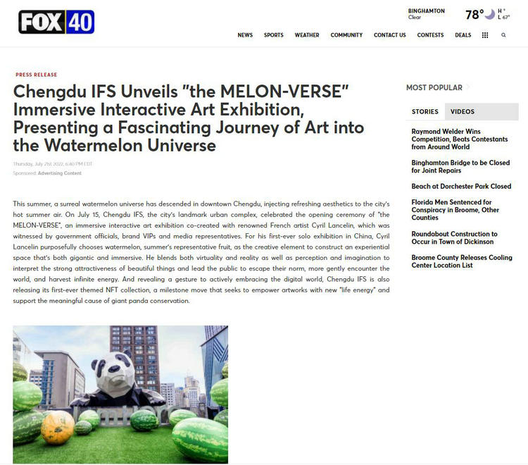 7月15日,城市地标性城市综合体成都IFS举办了与法国著名艺术家西里尔·兰斯林(Cyril Lancelin)共同打造了沉浸式互动艺术展“MELON-VERSE”,轰动全城!